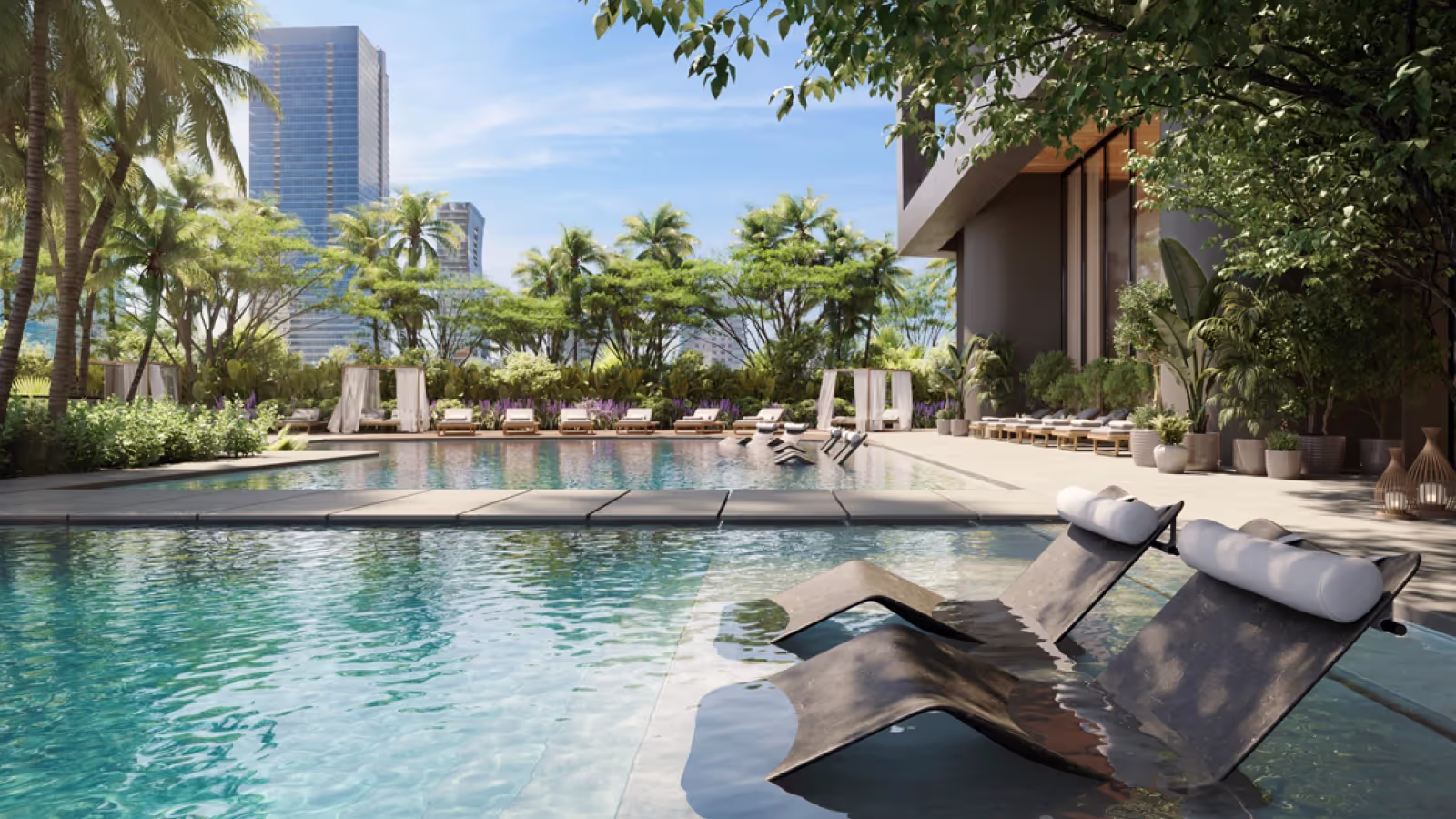 - Amenities: Over 80,000 square feet of indoor and outdoor amenities span seven levels, including a rooftop pool and lounge, wellness spa, fitness pavilion, children's learning center, private dining spaces, a library, and immersive art installations—all with panoramic views and lush garden settings.