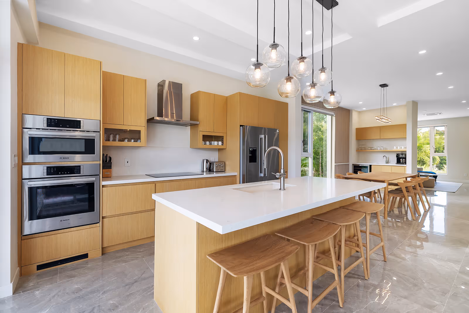 Villa #5 is designed around open-concept living and effortless indoor–outdoor flow. The kitchen, dining, and living areas connect seamlessly, enhanced by a dedicated TV room, wet bar, and powder room for entertaining ease.