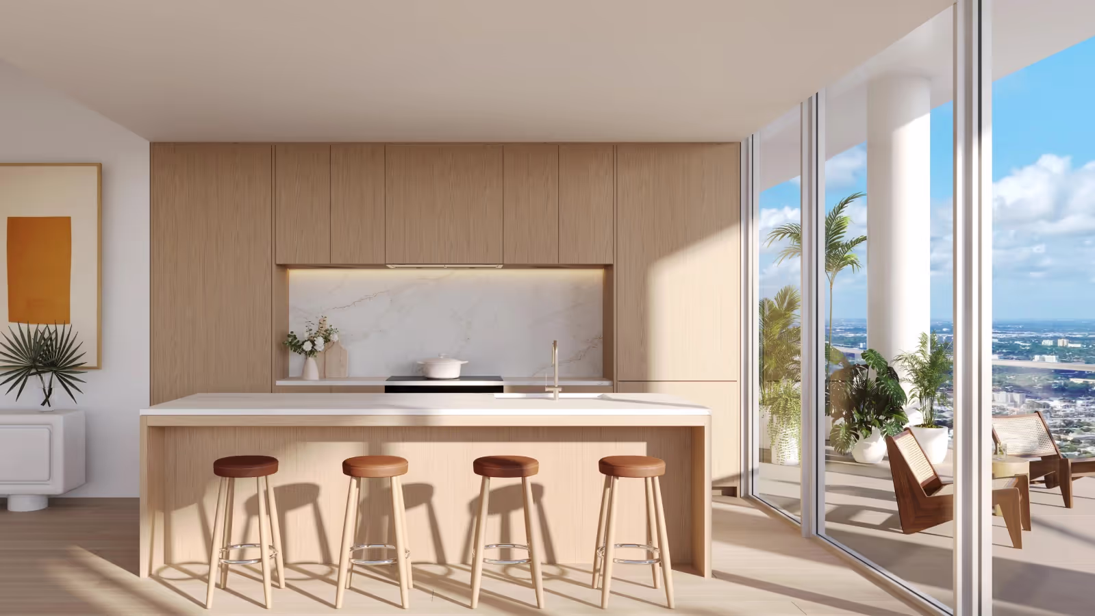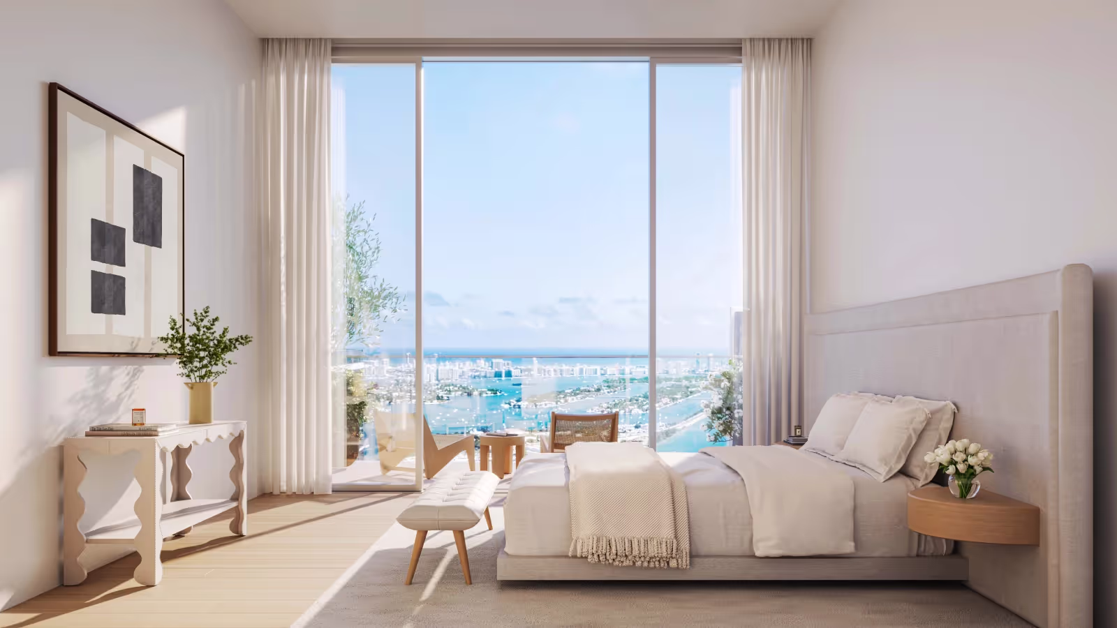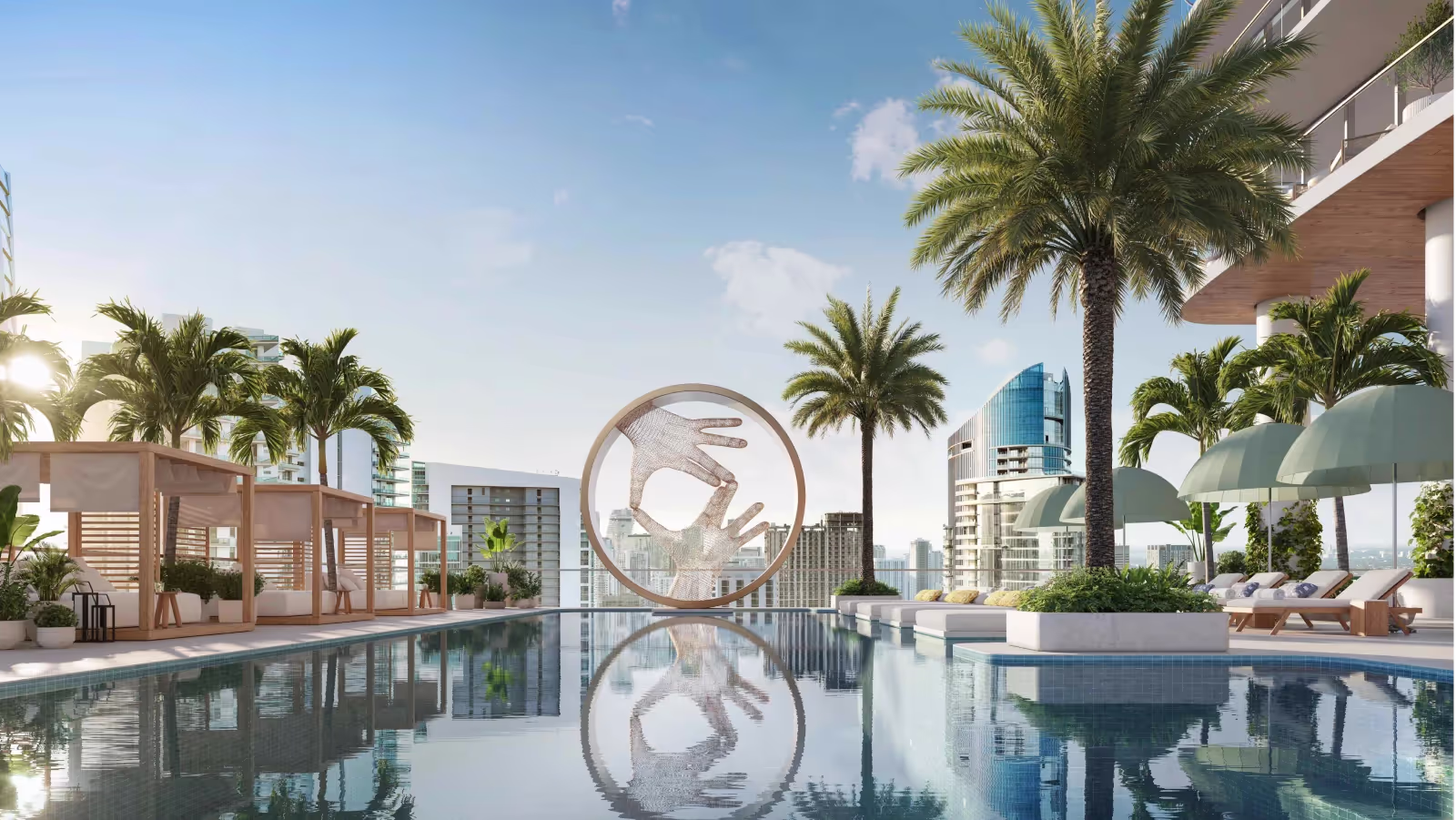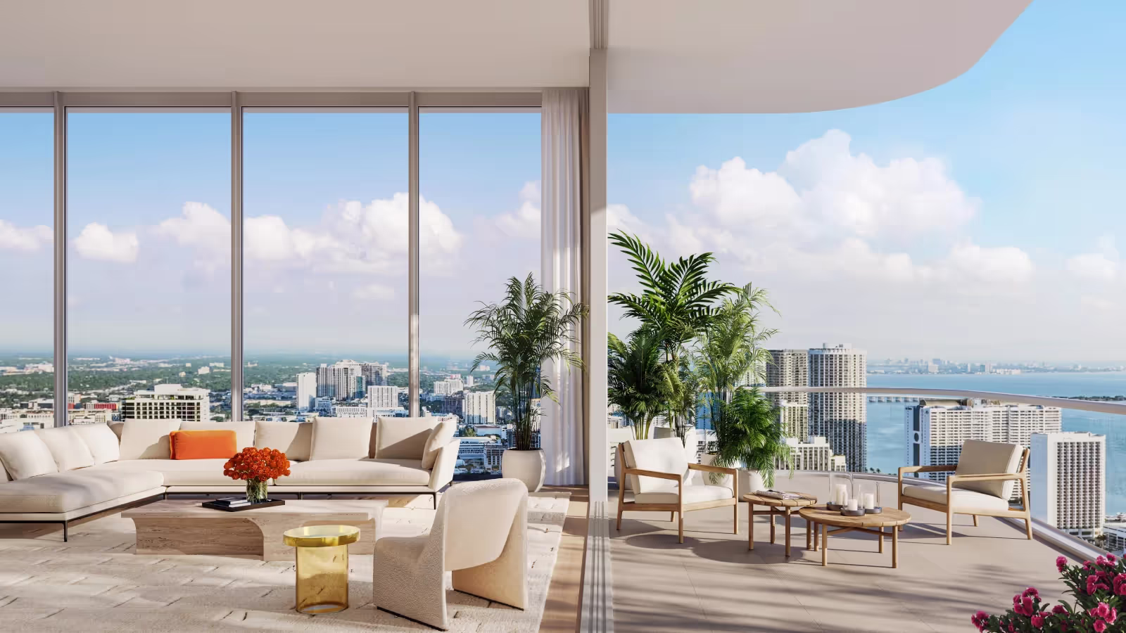 Panoramic Views: Residences, beginning from the 43rd floor, provide expansive terraces with panoramic views of the city, Biscayne Bay, and the Atlantic Ocean, seamlessly blending indoor and outdoor living.