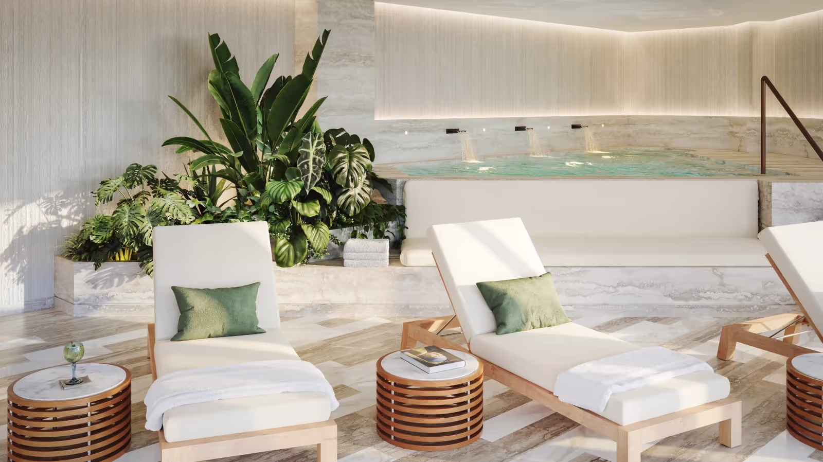 - Amenities: Over 20,000 square feet of curated amenities include an oceanfront restaurant exclusive to residents and guests, beachside swimming pool with cabanas, spa with sauna and treatment rooms, wine room, screening room, and a state-of-the-art fitness center with private training studios.