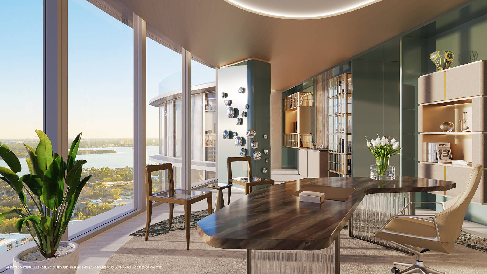 Each residence features direct private elevator access, expansive living and entertaining spaces, and terraces up to 12 feet deep with unobstructed views of the Atlantic Ocean, Biscayne Bay, and the Miami skyline .