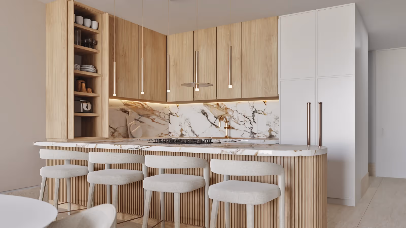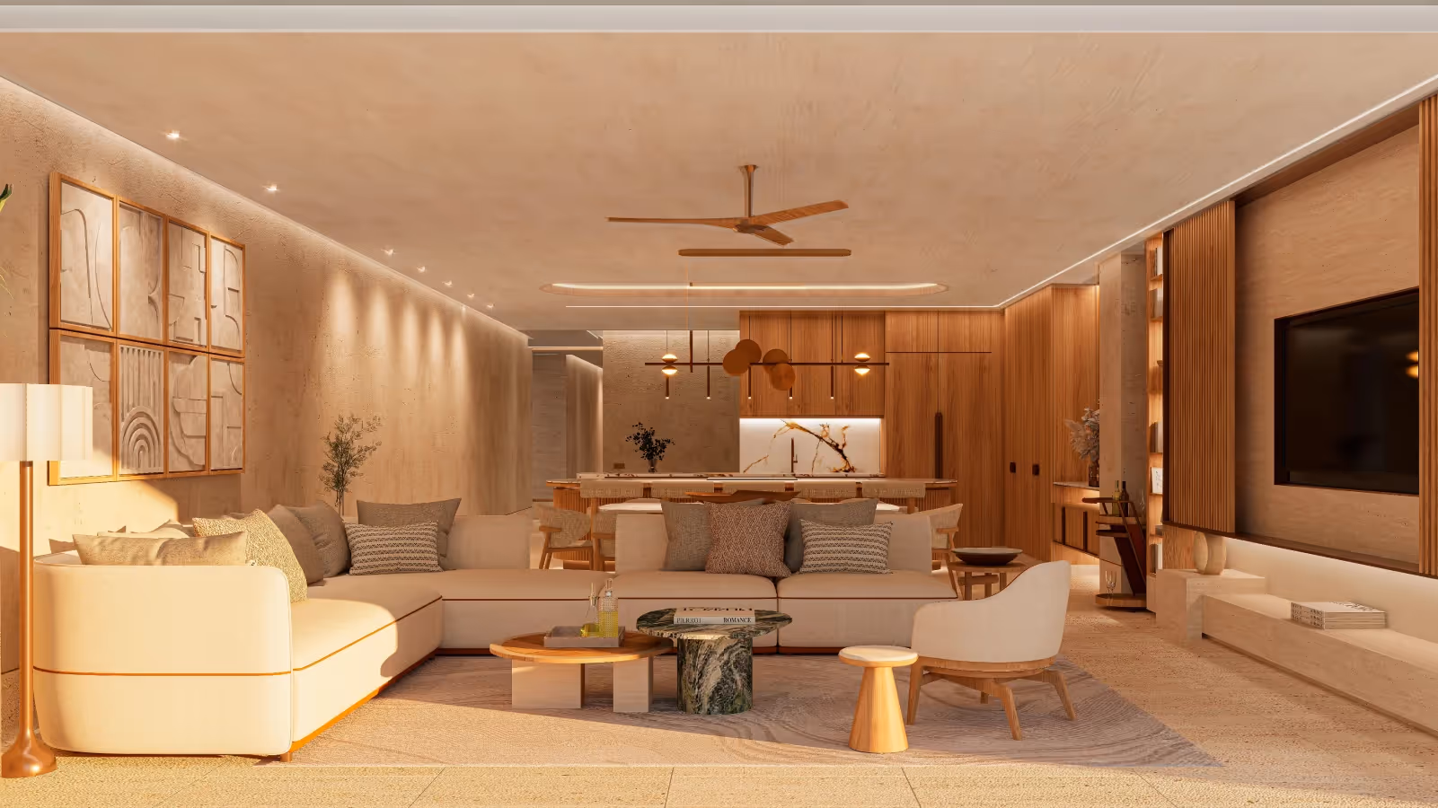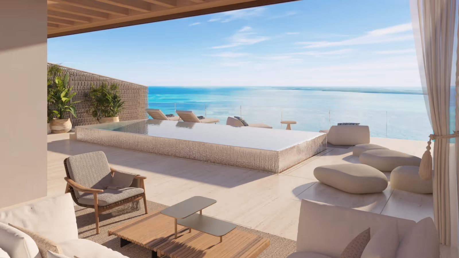 - Architectural Distinction: Residences are crafted with expansive layouts, ocean-facing terraces, and refined natural finishes. Sizes range from 235 m² (2-bedroom residences) to 901 m² (5-bedroom penthouses). Every residence is delivered with private access, ample storage, and designer kitchens and bathrooms. The design vision blends modern elegance with biophilic principles, emphasizing light, nature, and holistic well-being.