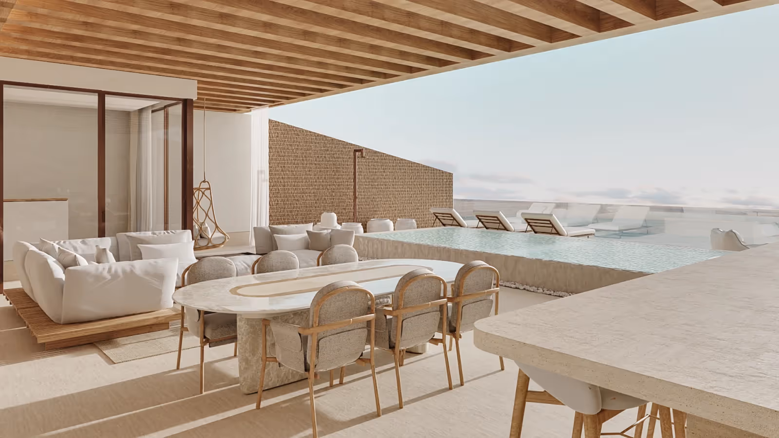 - Outdoor Space: Private rooftop terraces with pools, summer kitchens, and expansive entertaining areas